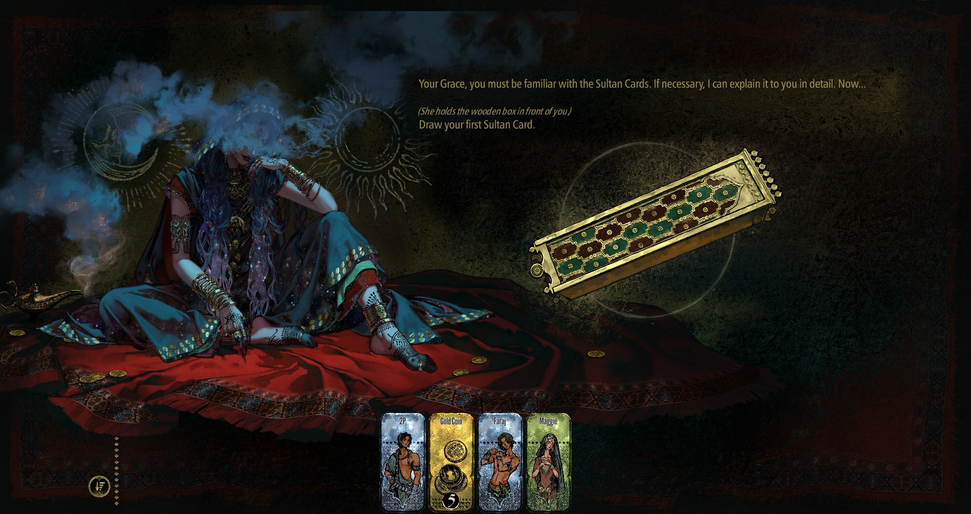 The sultan puts you in charge of playing the game and having to make life-or-death decisions to defeat each Sultan Card. If you fail, he’ll execute you.