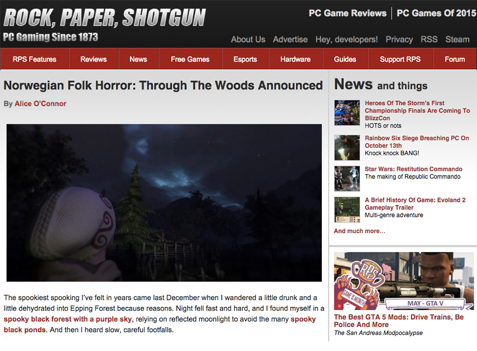 To read the full article, visit http://www.rockpapershotgun.com/2015/05/12/through-the-woods-norwegian-horror-game/