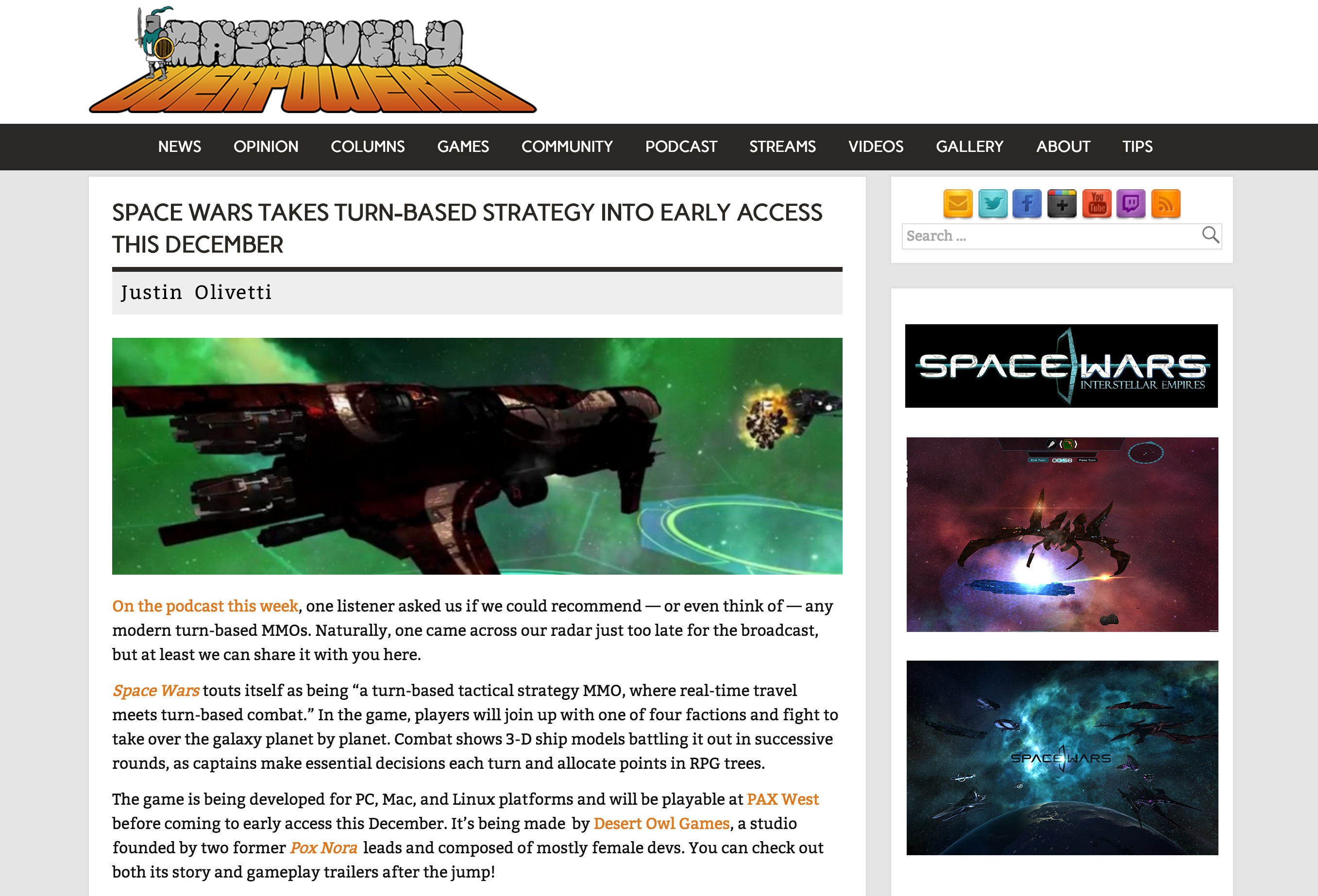 MassivelyOP’s Justin Olivetti reports Space Wars: Interstellar Empires is coming to Early Access. Space Wars will make its gameplay debut at PAX West, with the beta launching in Q4 2016.